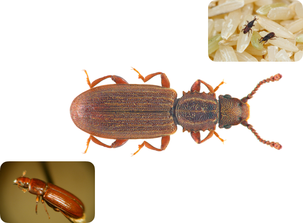 Các loại côn trùng gây hại phổ biến nhất trong hạt gạo, ngũ cốc và trái cây sấu bao gồm mọt gạo (Sitophilus oryzae), bọ cánh cứng ăn bột (Tribolium sp.), và bọ răng cưa (Oryzaephilus surinamensis). Những côn trùng này có thể gây thiệt hại đáng kể, làm giảm chất lượng sản phẩm, gây mất chất dinh dưỡng và làm giảm lòng tin của khách hàng.