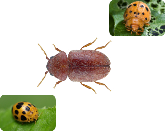 Các loại côn trùng gây hại chính trong nguyên liệu thuốc lá bao gồm bọ cánh cứng thuốc lá (Lasioderma serricorne) và bọ cánh cứng ăn lá (Epilachna varivestis). Những côn trùng này có thể gây thiệt hại nghiêm trọng, ảnh hưởng đến chất lượng và giá trị của lá thuốc lá.